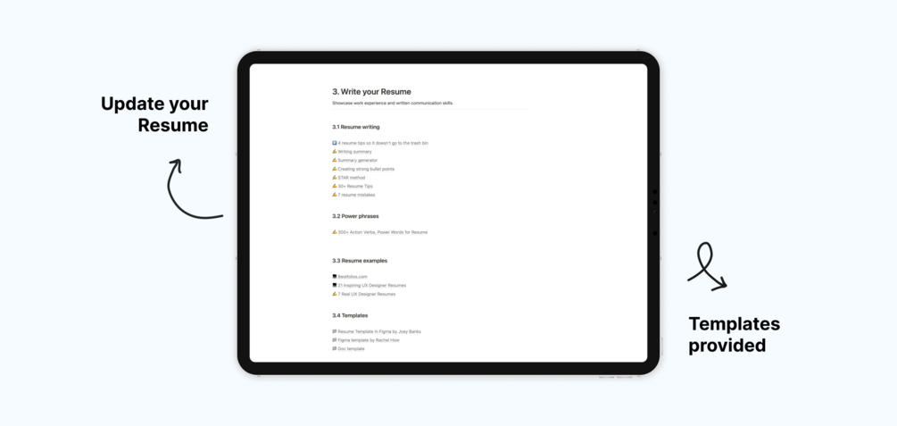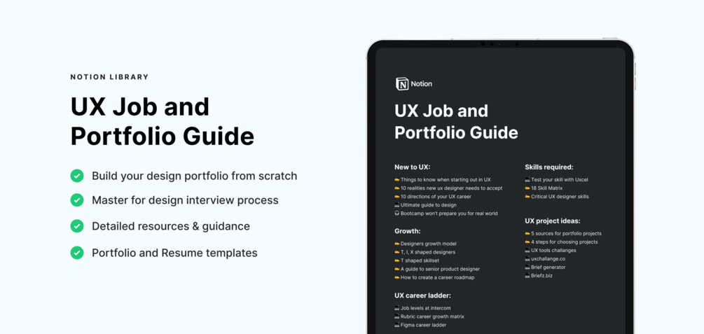 The UX Job and Portfolio Guide is a curated library of over 100 resources and templates.